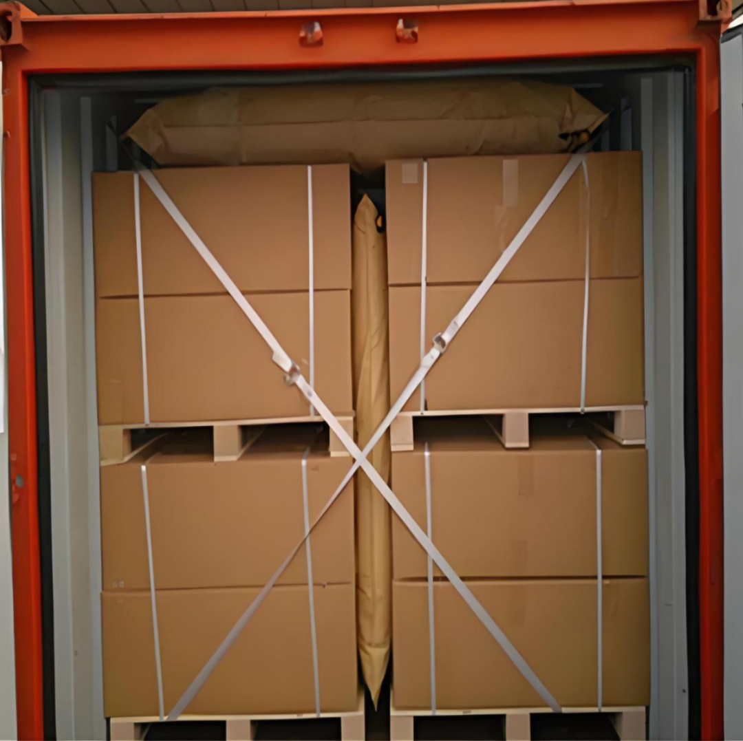 Combined with high-strength inflatable dunnage bags and customized wooden racks, a multi-dimensional buffering system was built inside the container. This ensured that the cargo remained in place even during rough sea conditions, physically eliminating the risk of shifting and collision during transportation.